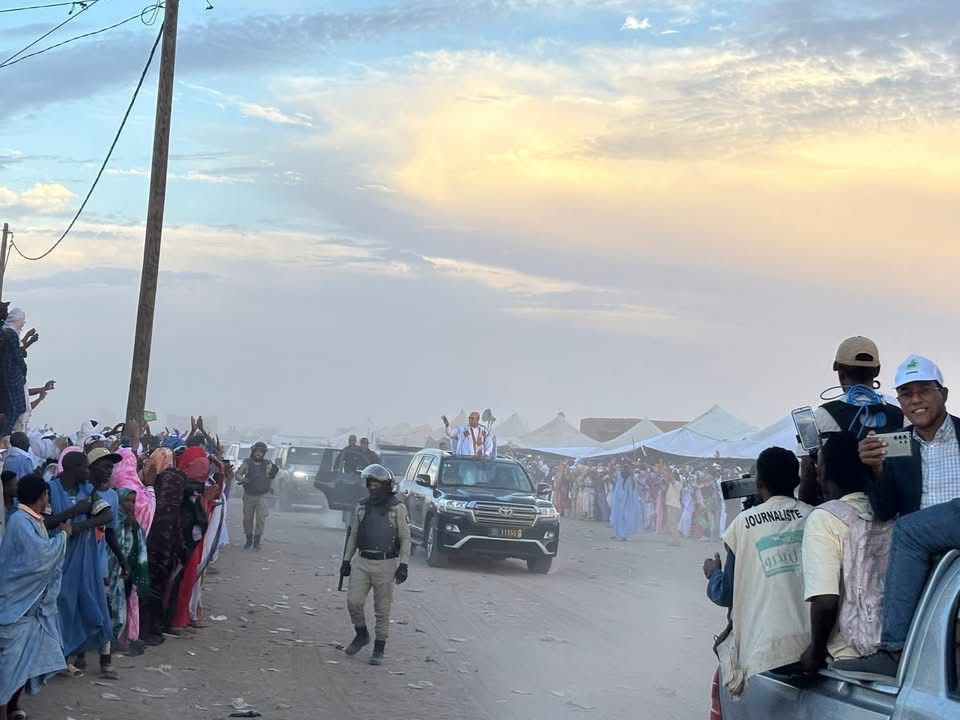 وصل رئيس الجمهورية محمد ولد الشيخ الغزواني مقاطعة عدل بكرو قبل قليل حيث استقبله بحشود جماهيرية عريضة احتفاء بقدومه وزيارته للمدينة.