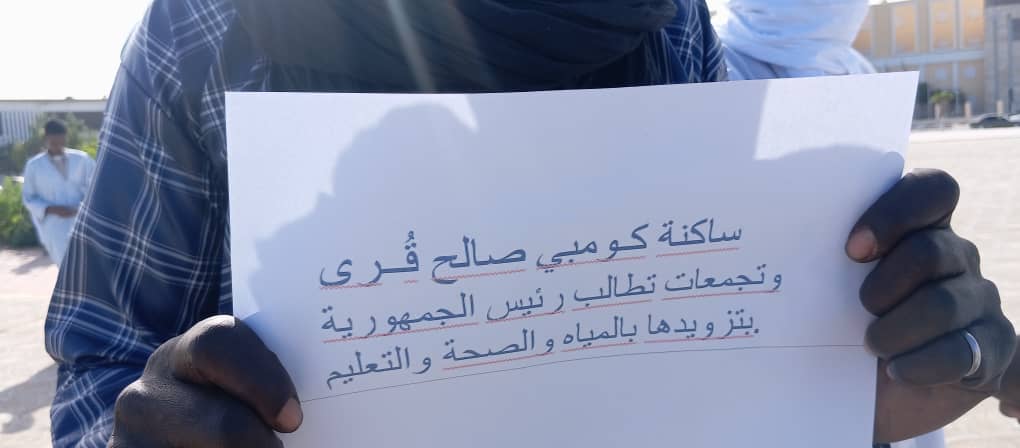 خرج اليوم الأربعاء عدد من ساكنة مدينة كومبي صالح إلى ساحة الحرية أمام القصر الرئاسي في نواكشوط، للمطالبة بفك العزلة عن مدينتهم وتوفير مياه صالحة للشرب.