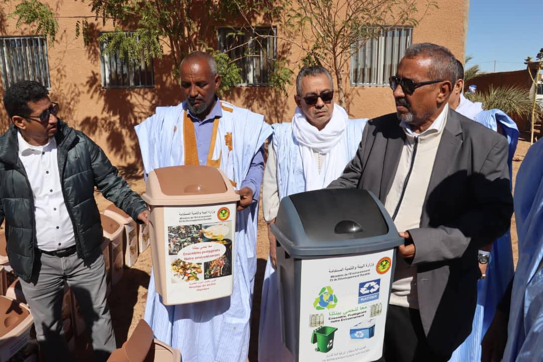 أشرف الأمين العام لوزارة البيئة والتنمية المستدامة مولاي براهيم مولاي دريس، على تسليم ستين (60) حاوية فرز النفايات لبلدية وادان، بحضور مستشار والي آدرار، والعمدة المساعد، ومنسق مشروع الإدارة والتسيير المندمج للمحميات في المناطق الجافة بموريتانيا (إمبادرا).