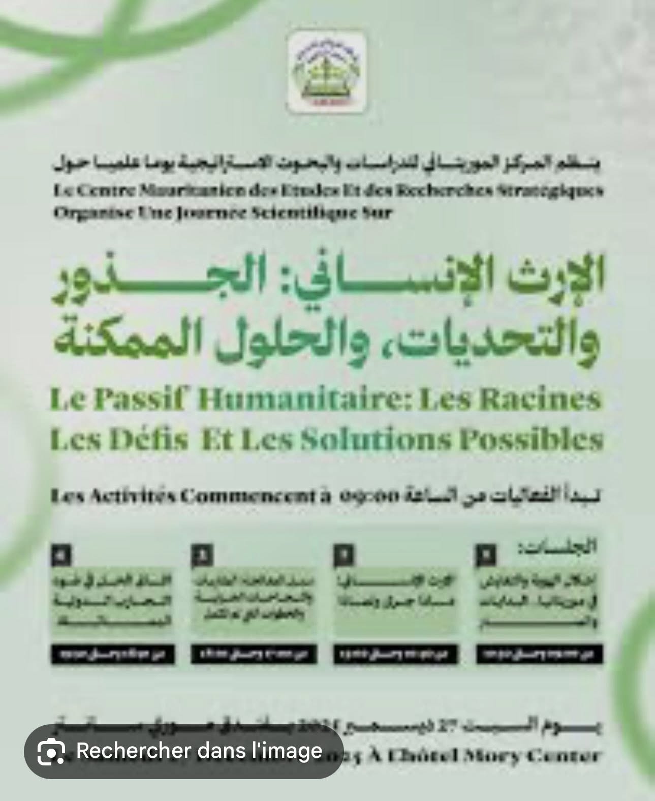 قدم رئيس حزب الصواب الدكتور عبد السلام ولد حرمه ورقة علمية في ندوة الإرث الإنساني: ( الجذور التحديات والحلول الممكنة) المنظمة من طرف المركز الموريتاني للبحوث والدراسات الاستراتيجية) التي نظمها المركز اليوم في نواكشوط.