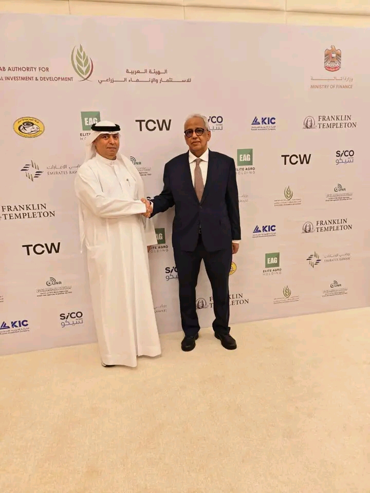 عقد وزير الشؤون الاقتصادية والتنمية، الدكتور عبد الله سليمان الشيخ سيديا، لقاء ثنائيا مع سعادة الدكتور عبيد سيف حمد الزعابي، رئيس مجلس إدارة الهيئة العربية للاستثمار والإنماء الزراعي، وذلك على هامش أعمال مؤتمر مبادرات تحقيق الأمن الغذائي المنعقد في دبي.