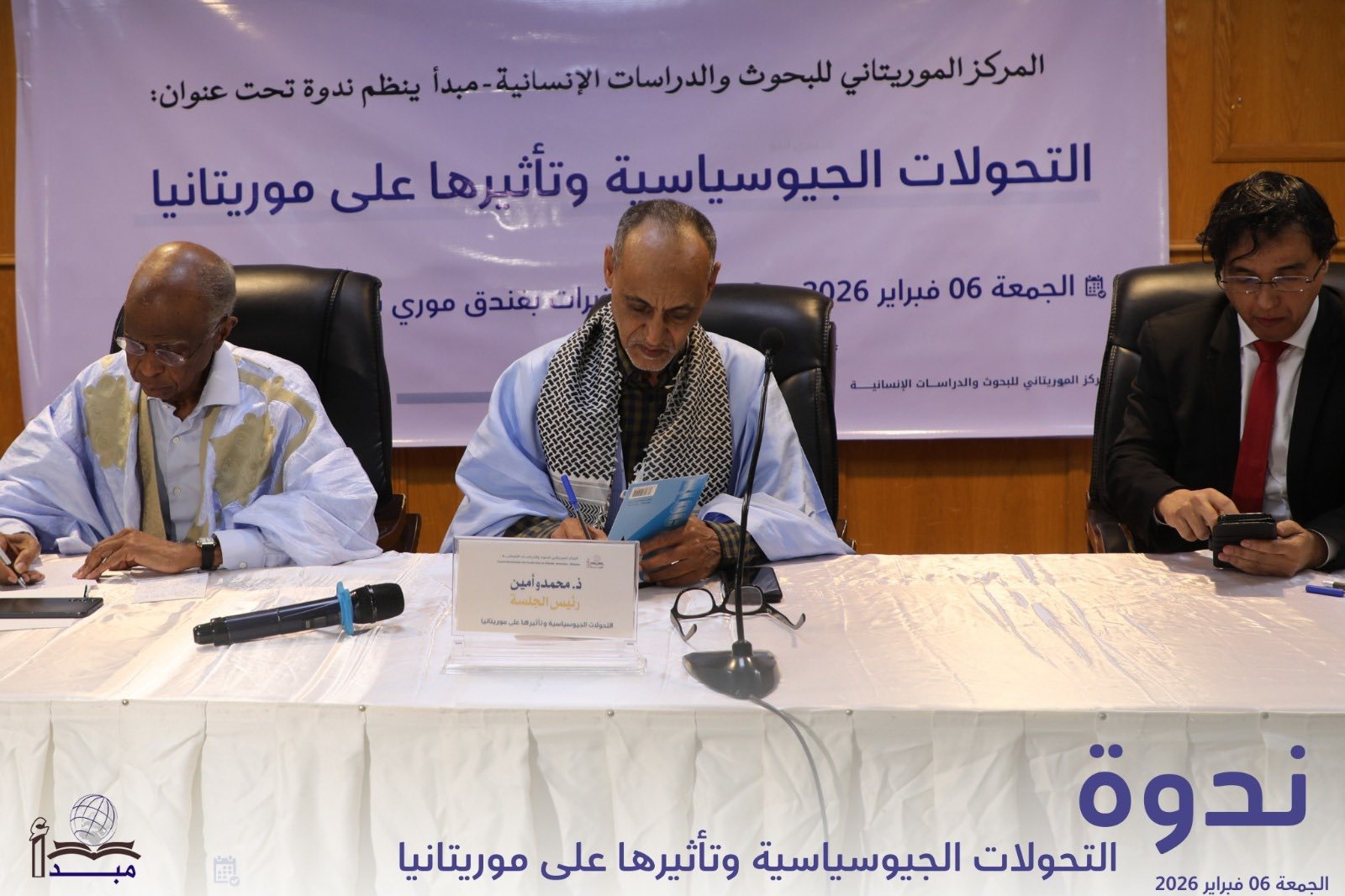 نظم المركز الموريتاني للبحوث والدراسات الإنسانية "مبدأ" مساء الجمعة السادس من فبراير ندوة استراتيجية حملت عنوان التحولات الجيوسياسية وتأثيرها على موريتانيا