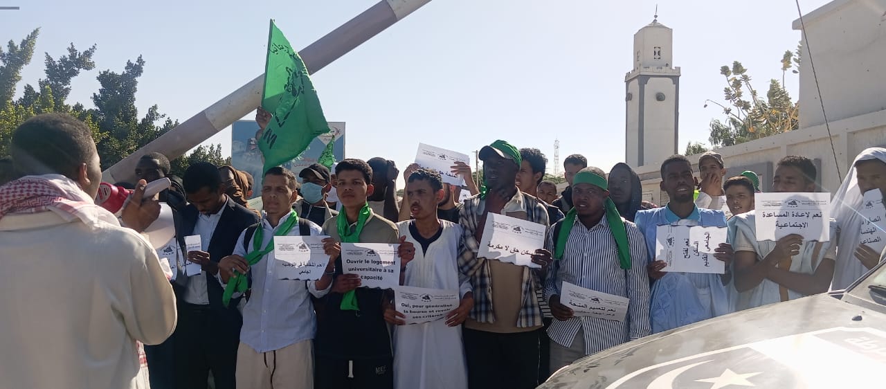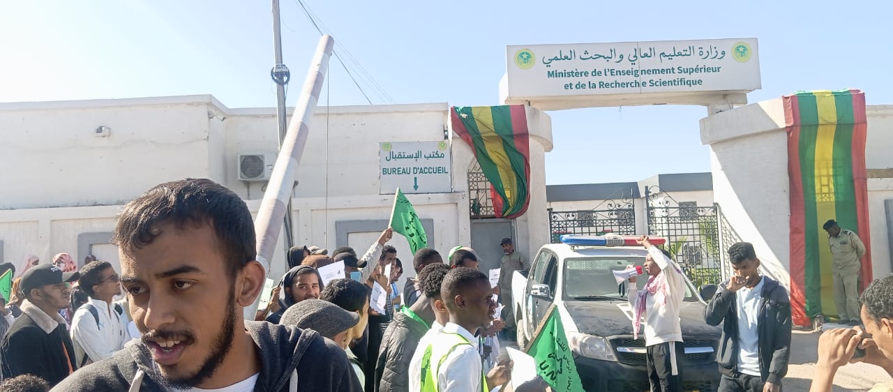 نظم الاتحاد الوطني لطلبة موريتانيا، اليوم الثلاثاء، وقفة احتجاجية أمام وزارة التعليم العالي، تنديدا بتأخر صرف المنح الدراسية وانعدام الخدمات الجامعية، خصوصا النقل والسكن.