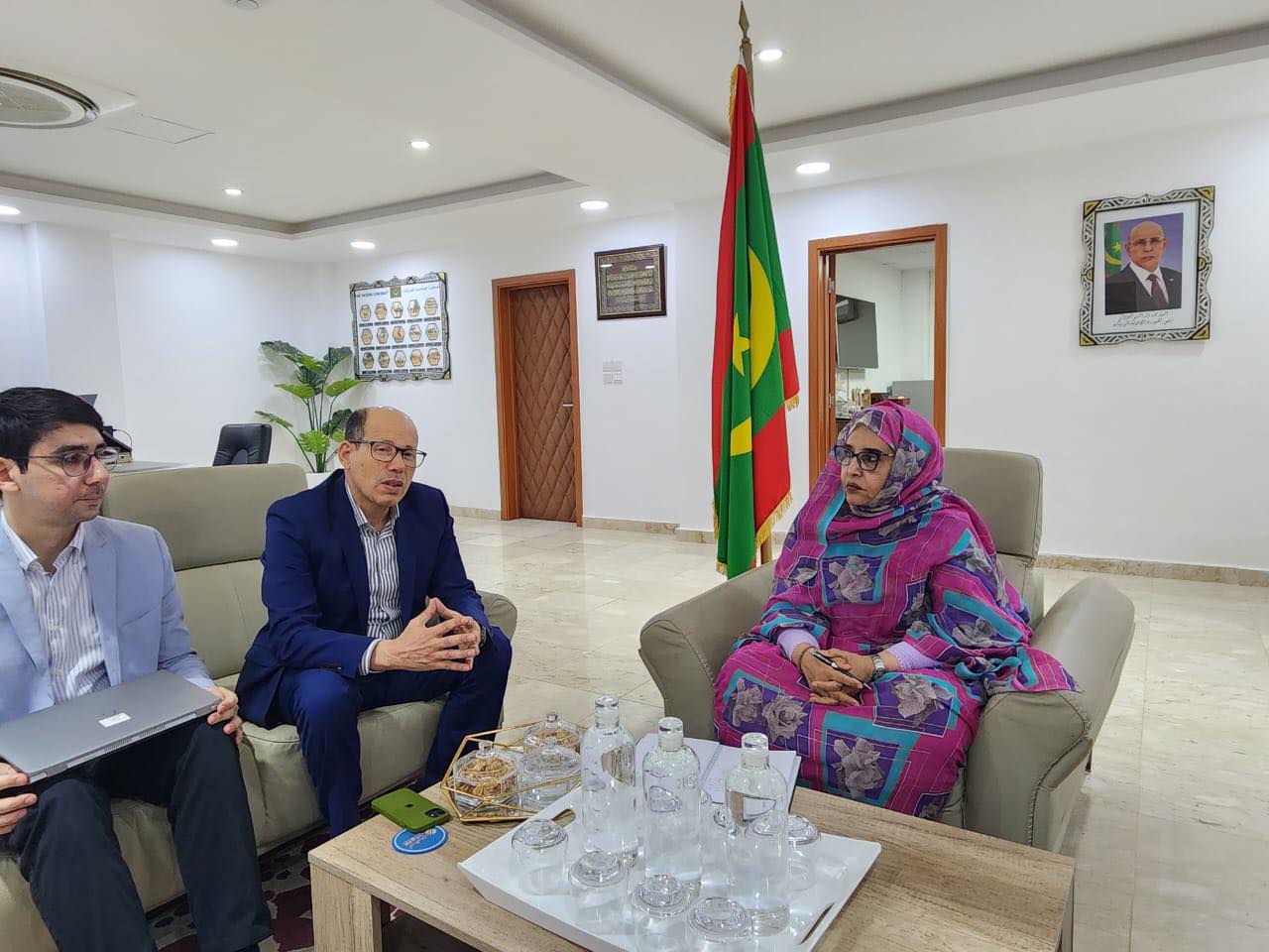 استقبلت وزيرة البيئة والتنمية المستدامة مسعودة بحام محمد لغظف، صباح اليوم الاثنين وفداً من NDC Partnership، وذلك في إطار تعزيز التعاون لدعم تنفيذ الالتزامات المناخية لـ موريتانيا. وقد ترأس الوفد محمد بوسعيد وأمين أمور، بصفتهما على التوالي المدير الإقليمي لمنطقة الشرق الأوسط وشمال إفريقيا وإفريقيا جنوب الصحراء، ومسؤول تفاعل الدول بالشراكة التي يقع مقرها في بون (ألمانيا).