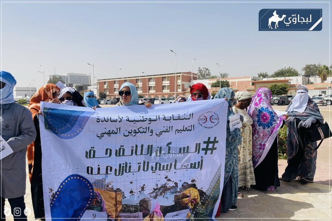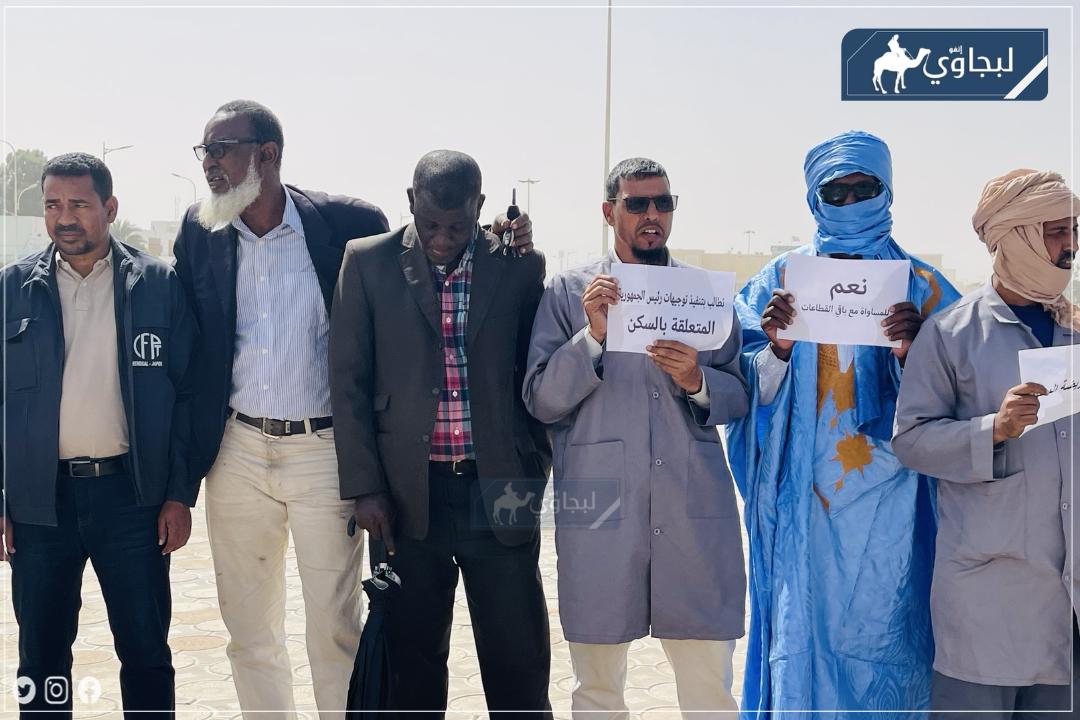 ورفعت النقابة خلال الوقفة لافتات تحمل شعارات تطالب بالسكن اللائق باعتباره حقا أساسيا غير قابل للتنازل، حسب الشعارات المرفوعة.