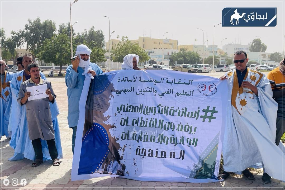 نظمت النقابة الوطنية لأساتذة التعليم الفني والتكوين المهني اليوم الثلاثاء وقفة احتجاجية ضد ما وصفوه بالاقتطاعات الجائرة والمضايقات الممنهجة، حسب قولهم.