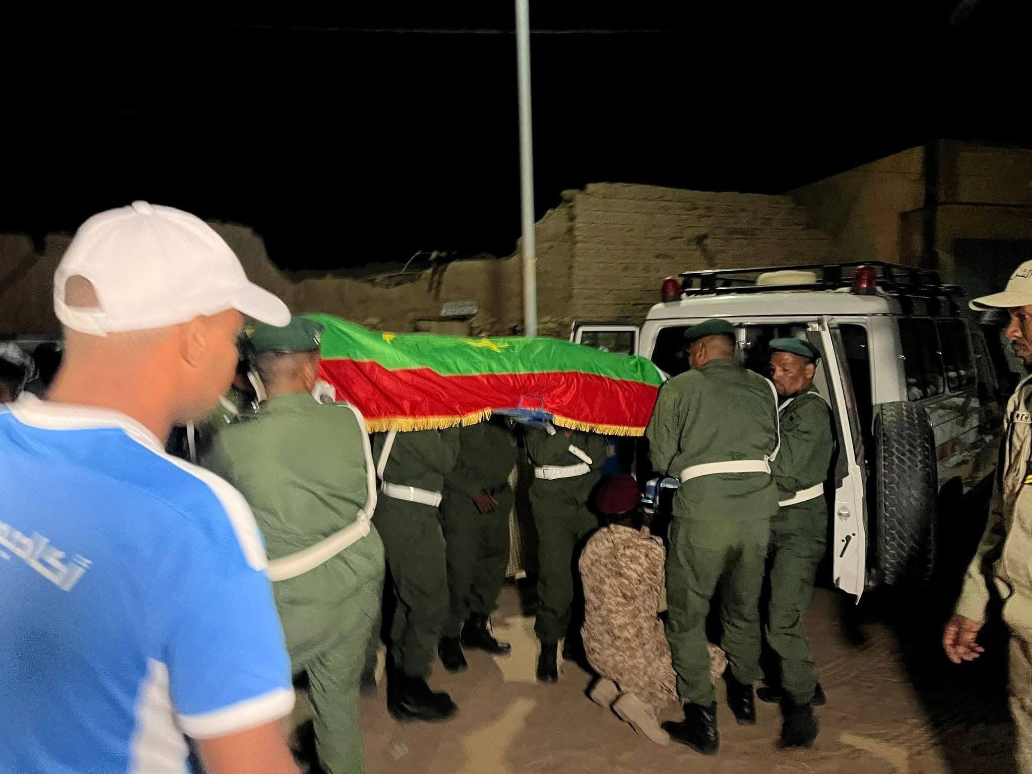 ووصلت الجنازة إلى موريتانيا على متن طائرة تابعة الديوان الأميري القطري قادمة من قطر، قبل أن تُنقل إلى أطار عبر طائرة عسكرية.