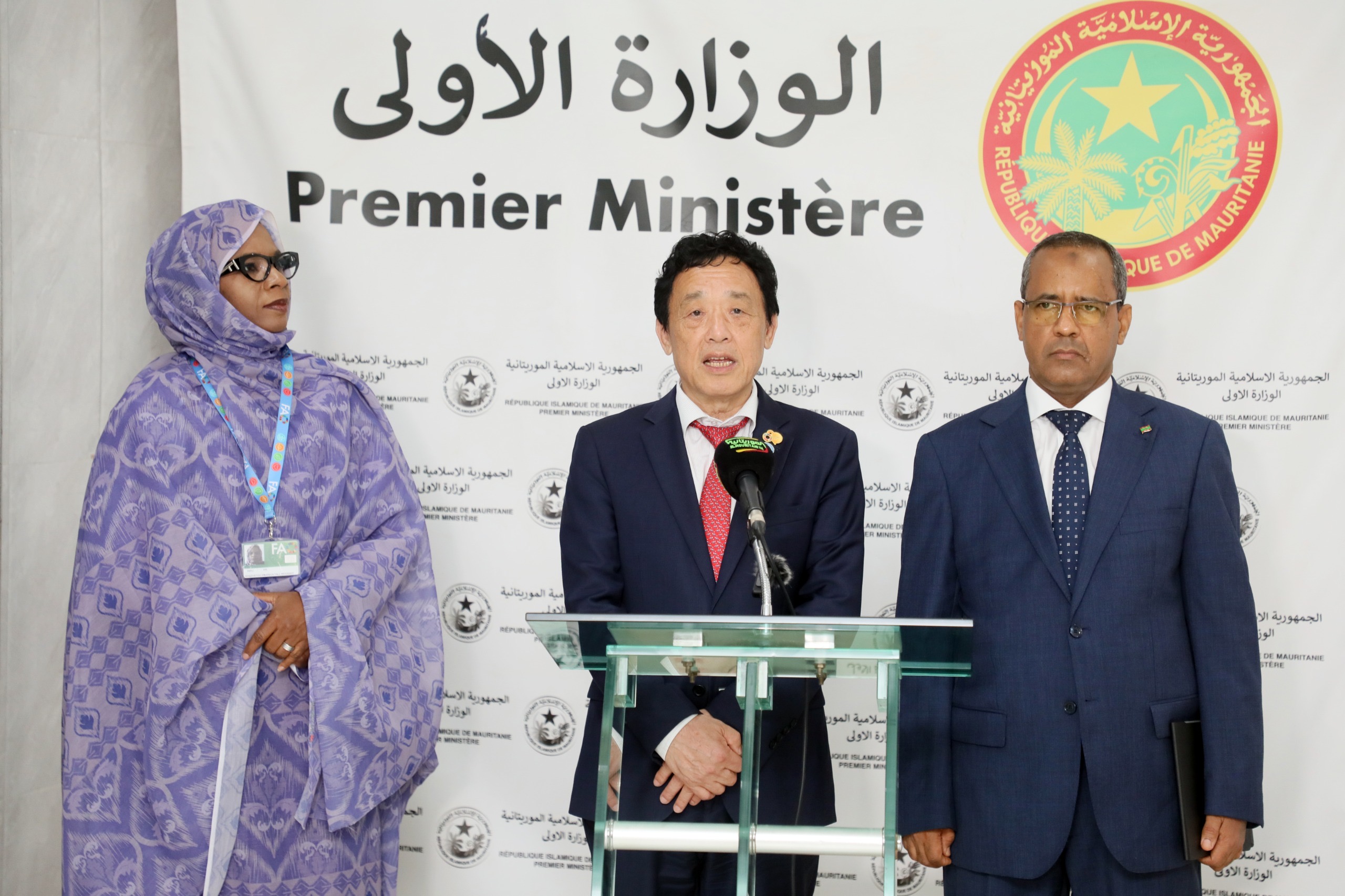 استقبل الوزير الأول السيد المختار ولد اجاي، اليوم الأربعاء 15 إبريل 2026 ، بمكتبه في مبنى الوزارة الأولى، المدير العام لمنظمة الأمم المتحدة للأغذية والزراعة (الفاو) السيد شو دونيو.
