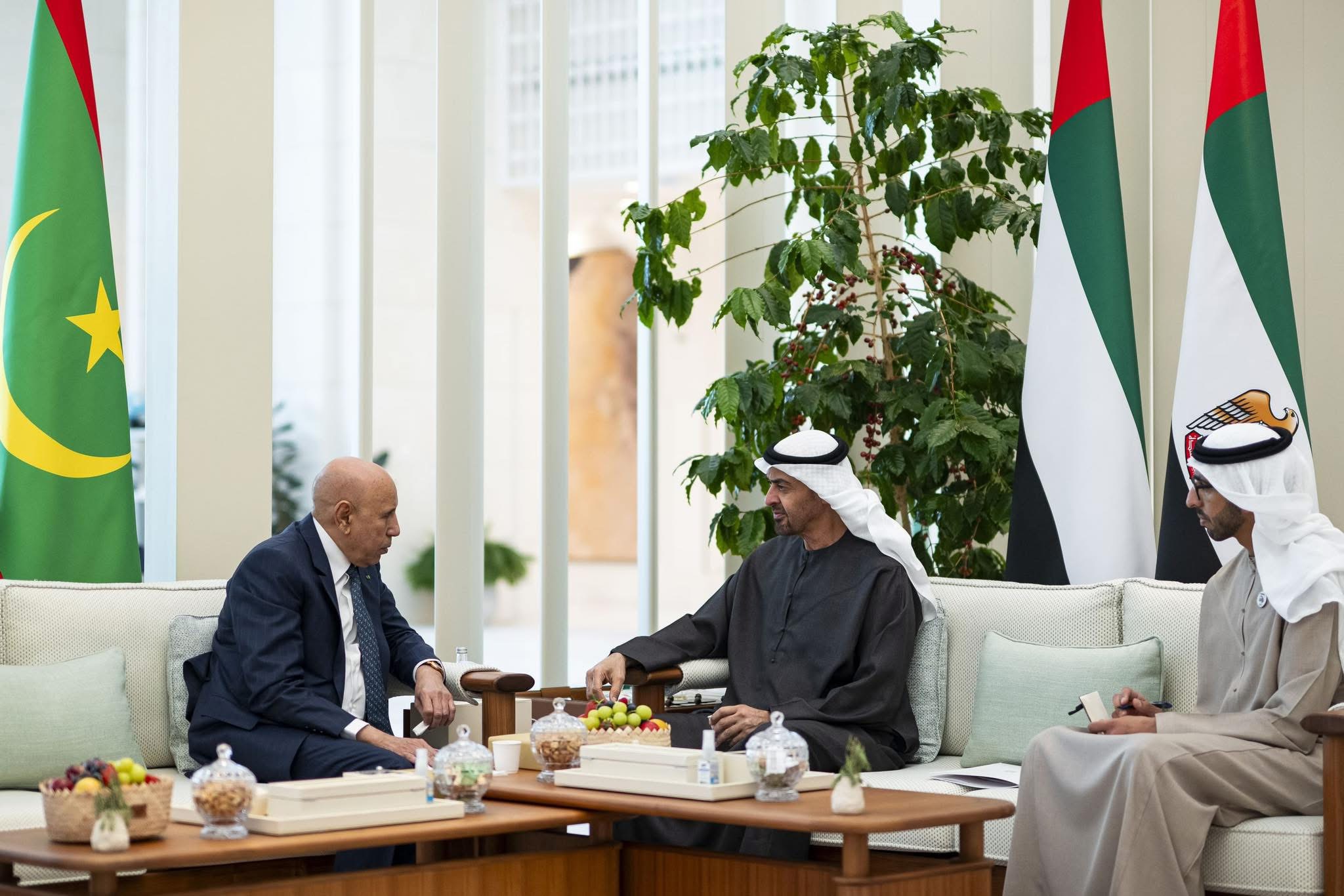 التقى محمد ولد الشيخ الغزواني، رئيس الجمهورية، اليوم في أبوظبي، بـمحمد بن زايد آل نهيان، رئيس دولة الإمارات العربية المتحدة.