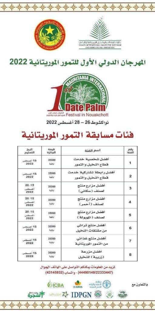 أصحاب الواحات في شنقيط يحتجون علي إقصاء الجهات المعنية الوصية علي النسخة الأولي لمهرجان الدولي للتمور إقصاء نخلة سلمدينة
