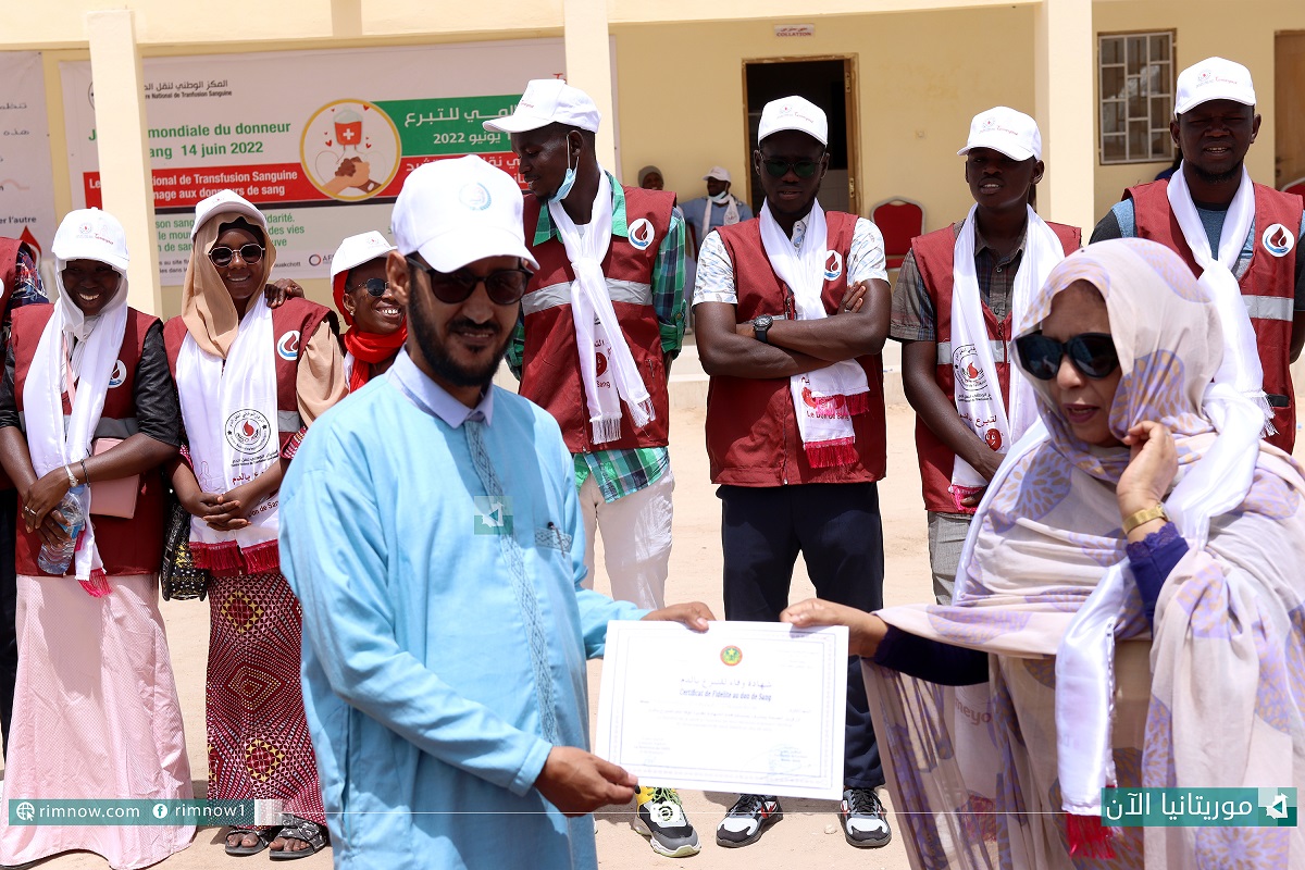 وحضر فعاليات الحفل المنظم تحت شعار "التبرع بالدم عمل تضامني"، كل من الممثلة المقيمة للمنظمة العالمية للصحة، ونائبة مديرة الوكالة الفرنسية، وممثل عن جهة نواكشوط، ورئيس مجلس إدارة المركز الوطني لنقل الدم، والمدير العام للصحة العسكرية، وعدد من أطر القطاع، وممثلي منظمات المجتمع المدني.