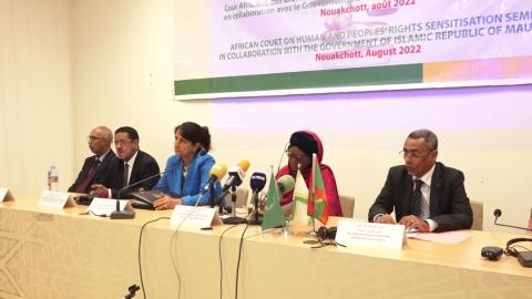 من ناحيتها عبرت رئيس المحكمة الإفريقية لحقوق الإنسان إيماني داوود عبود عن تقديرها للتعاون المثمر والدعم الذي تقوم به حكومة الجمهورية الإسلامية الموريتانية للمحكمة، مثمنة استجابتها السريعة لطلبها تنظيم هذاه الورشة.