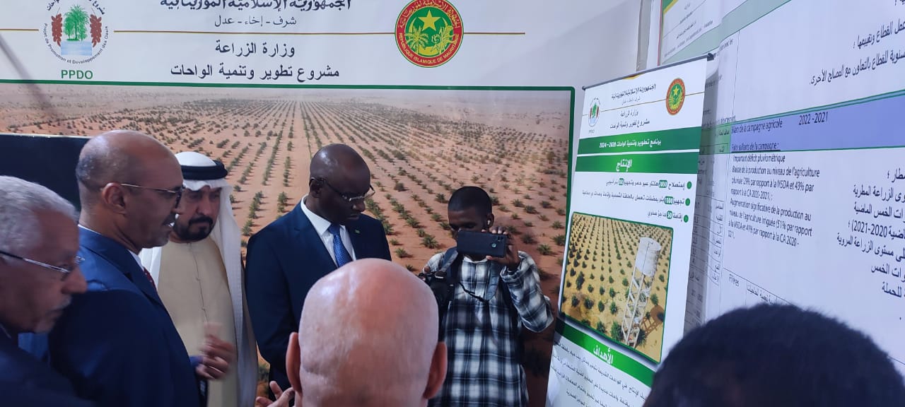 قام وزير الزراعة السيد آدم بوكار سوكو، صباح اليوم بقصر المؤتمرات في نواكشوط، بزيارة معرض التمور الموريتانية، ضمن الفعاليات المصاحبة للمهرجان الدولي الأول للتمور الموريتانية، وذلك رفقة عدد من الوزراء وسفير دولة الإمارات العربية المتحدة والأمين العام لجائزة خليفة الدولية لنخيل التمر والابتكار.