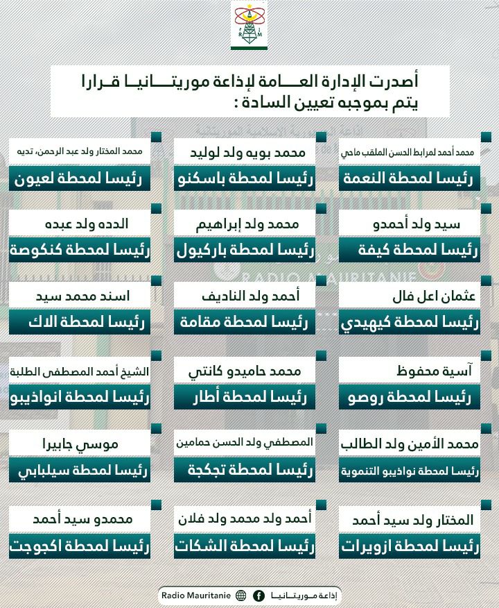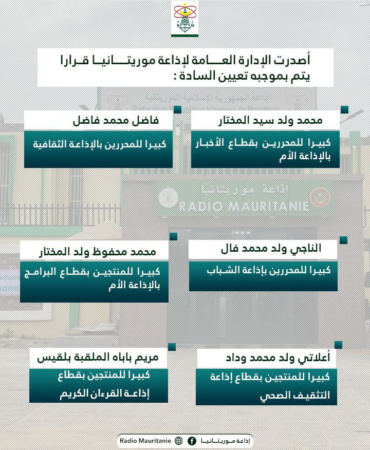 عاجل/ الاعلان عن تغيير جذري صعد الكفاءات الشابة والمهنية في محطات إذاعة موريتانيا*